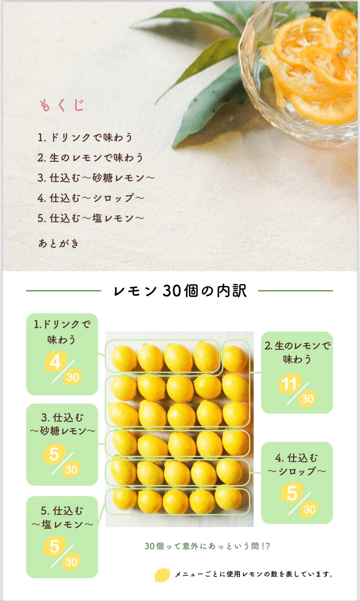レモンを栽培している農家の方は、レシピをコピーしたものをレモンと一緒にお客さまにお届けしていたダック、という使いかたもしていただけます。